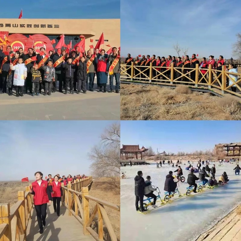 古浪八步沙两山实践创新基地春节期间组织开展《领航》歌曲传唱活动。武威沙漠公园冰雪游乐项目让游客体验到冰雪乐趣,感受到运动魅力。