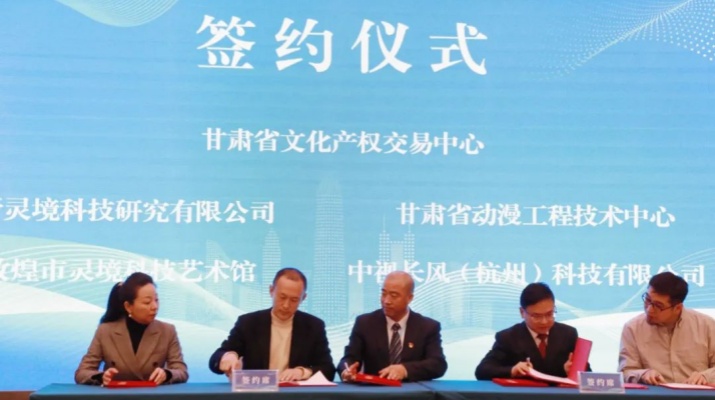 当天,甘肃文交中心与新灵境科技研究有限公司、中视长风(杭州)科技有限公司、甘肃省知识产权保护中心、甘肃云数字媒体版权保护中心等省内外八家单位签署合作协议,携手发展,合力推动全省数字赋能文化产业繁荣发展。