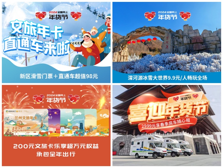为办好本次促消费活动,文旅科技公司“漠迹”平台通过前期充分的准备,经过严格品控把关和精心策划组织,精选出了文旅年卡,优质农土特,年菜礼包,甘味特产和其他省份的高品质生鲜等五个大类、数十个不同品类的特色年货产品进行参展和线上销售。“漠迹”平台更依托集团各子公司文旅资源及周边服务体系,为广大消费者提供景区优惠门票、房车租赁、兰州新区滑雪场线路游出行套票等“春节周边”文旅服务产品。在活动现场,文旅科技工作人员还通过“漠迹”抖音直播间开辟了线上销售渠道,让广大平台用户和消费者足不出户也能在“漠迹”平台购买到优质年货,在线享受到本次活动带来的优惠价格和浓厚的新春氛围。
