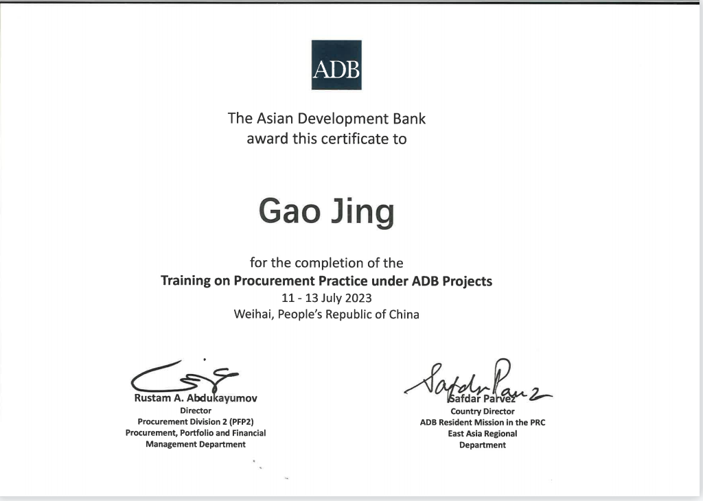 2023年8月,由亚洲开发银行(以下简称“亚行”)主办,亚行驻中国代表处承办的采购实践培训、项目财务管理培训在山东顺利举办。甘肃文旅集团国际金融组织贷款项目管理办公室三名同志作为亚行贷款甘肃环境可持续乡村振兴与发展项目代表参加了此次培训。