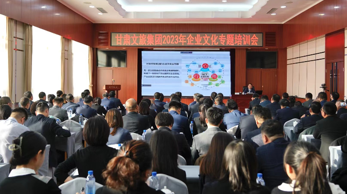 按照集团年度培训计划和“三抓三促”行动安排,12月2日,甘肃文旅集团举办企业文化专题培训会。主要目的是学习贯彻习近平文化思想,进一步提升全体干部职工对集团企业文化的认知,促进企业文化走深走实,持续转化,引导广大员工形成正确的价值取向、文化导向,凝聚思想共识,形成合力,为集团高质量快速发展提供强劲的软实力支撑。集团领导班子成员,各子公司负责人,集团总部全体员工和各子公司企业文化工作人员140余人现场参加,其余人员线上参加培训。