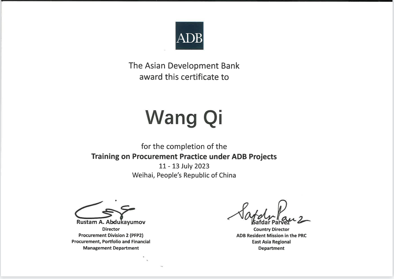 2023年8月,由亚洲开发银行(以下简称“亚行”)主办,亚行驻中国代表处承办的采购实践培训、项目财务管理培训在山东顺利举办。甘肃文旅集团国际金融组织贷款项目管理办公室三名同志作为亚行贷款甘肃环境可持续乡村振兴与发展项目代表参加了此次培训。